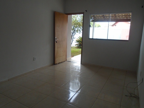 Garagem, sala, dois quartos(1 suite), banheiro social, cozinha e lavanderia